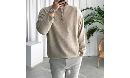 룩플레인 부드러운 루즈핏 헨리넥 반폴라 니트