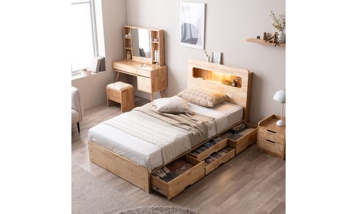 [삼익가구]러버 LED 4단 수납 원목 침대(YS 파워 본넬스프링 매트리스-슈퍼싱글)