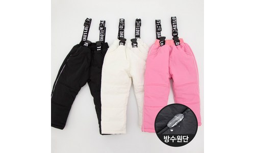 방수 아동 스키복 LOVE 멜빵 스키 바지 눈썰매 길이조절