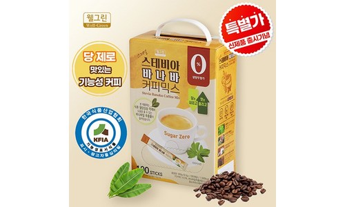 [기능성 표시 커피] 웰그린 스테비아 바나바 커피믹스 혈당 상승 억제, 9.5g, 100개입, 1개